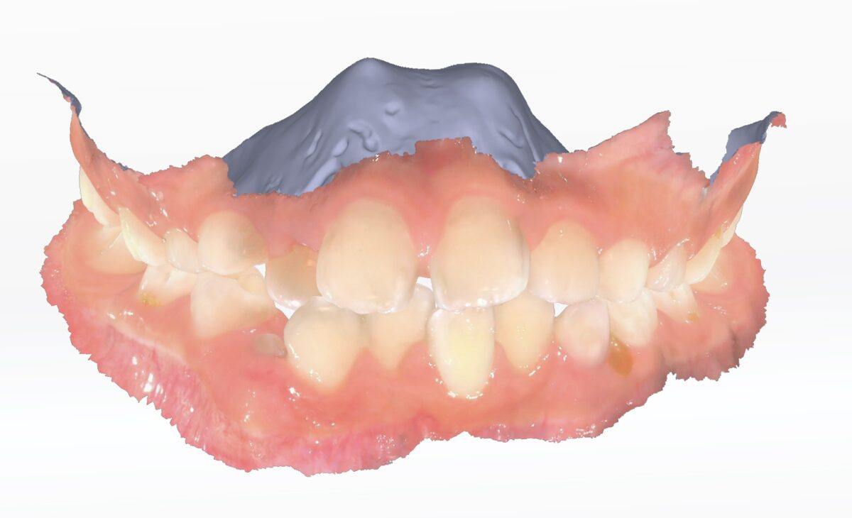 上の前歯の一部が内側に向かって生えてきており、下の前歯も含めてガタつきのある歯並び、いわゆる「叢生(そうせい)」が確認されました。