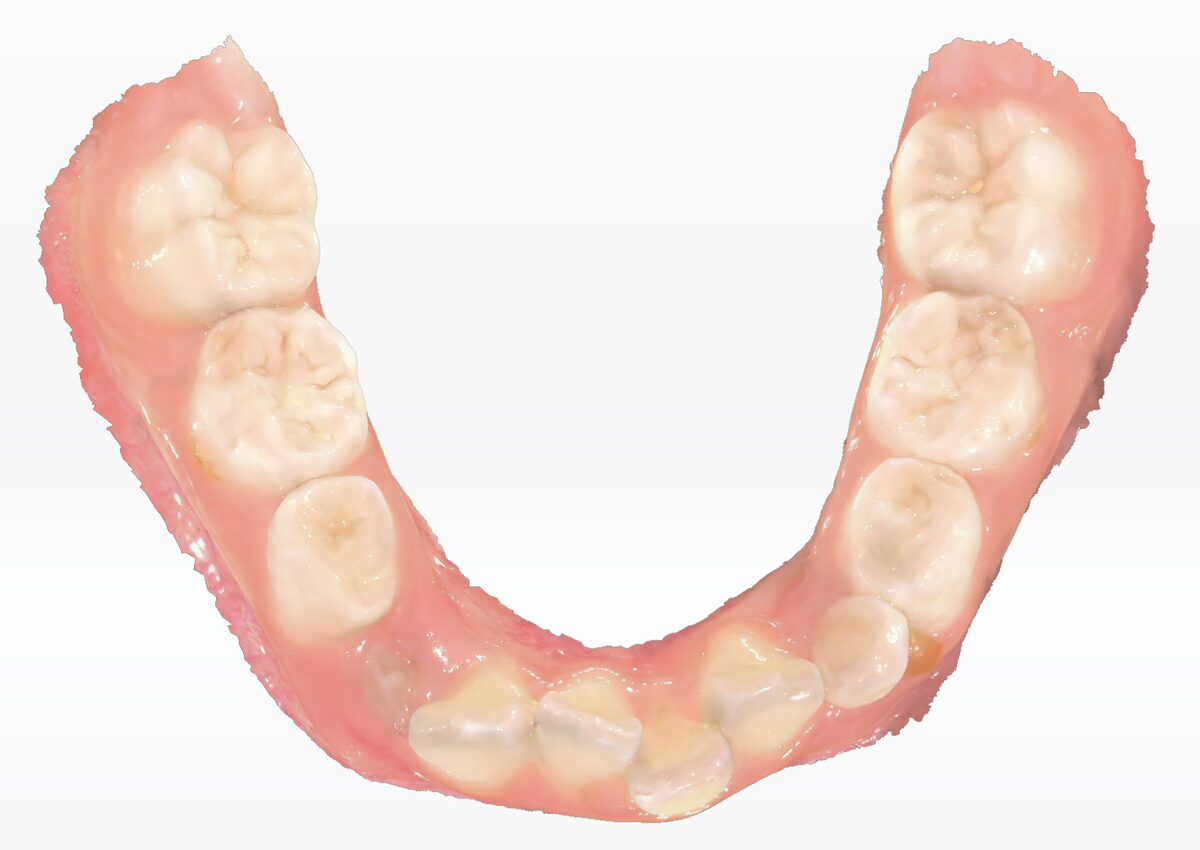 今後さらに大人の歯に生え変わる予定がありますが、大人の歯がきちんと並ぶためのスペースが十分ではないことも分かります。