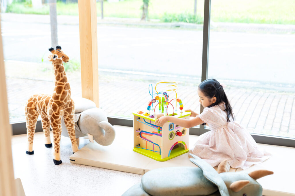 むし歯治療への不安が最も大きくなるのは待合室といっても間違いではありません。とりわけ小さなお子さまは、診療室から聞こえてくる音や漂ってくる臭いなどで不安を煽られ、必要以上に怖がってしまうこともあるでしょう。当院では大きなキリンのオブジェやアスレチックなどが設置されたキッズルームでお待ちいただくことが可能なので、治療のことは忘れて楽しく遊べます。お子さまの順番が回ってきたら、スタッフが笑顔でお声かけいたしますので、リラックスしたまま診療へと進めます。